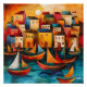 Houses and Boats: Folk and Naive Colorful Landscap Poster