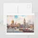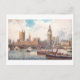This is a recreation of a vintage travel postcard showing the Houses of Parliament in London.