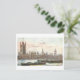 This is a recreation of a vintage travel postcard showing the Houses of Parliament in London.