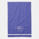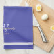 Housewarming Gift Monogram And Family Name Modern Script Chic Blue And White Kitchen Towel. Personalised white monogram design with the newlywed groom's family last name and date established printed in pale cream lettering on a beautiful blue background. A unique gift for newlyweds. Lovely for their new life together, makes a beautiful Housewarming Gift or Engagement Party Gift. Click Personalise this template to customise it with the Monogram last name initial, the family name, and the date established quickly and easily. Available with a matching apron, and a potholder, all are available in the Newlyweds & Wedding Gifts Collection in this store, which offers a gorgeous range of unique must-have personalised gift items for Newlyweds Gifts and Housewarming gifts. Ships Worldwide Fast.