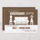 A housewarming party invitation featuring an illustration of a white living room complete with sofa with end tables on each side. End tables hold a lamp and a vase of flowers. Background colour and text colour is customisable.