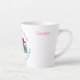 This latte coffee mug features a circular design with the words "Housework is for those who don't know how to sew" with a stylised drawing of a bright pink and grey vintage sewing machine in the centre. It can be personalised with your name, and is a lovely fun mug for anyone who sews.