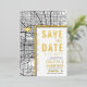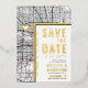 A unique save-the-date invitation card featuring a map of the city of Houston, Texas. It features several unique features that make an impression on your future guest, including the names of the bride and groom, the city name, and the words "Save the Date" in gold foil. A gold foil heart symbol pinpoints your location of love in the city. The city map is on the front and reverse sides and can be scaled and moved around. All elements of this invite are unlocked, so have fun being creative and making it fit your style.