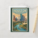 Houston Texas Illustration Travel Art Vintage Postcard