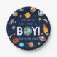 Houston We Have A Boy Space Galaxy Baby Shower Paper Plate