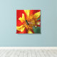 Accent your living space with this square style, wrapped canvas print that features the colorful, photographic image of a black and yellow, striped Hover fly on an orange and yellow Collarette Dahlia. A beautiful and stunning, floral image! Customize your canvas print size as desired along with frame options.