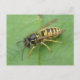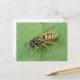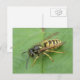 This postcard features a detailed photograph of a gorgeous black and yellow striped hoverfly resting on a leaf. The photograph was taken using macro photography for a fantastically detailed and sharp close-up image.