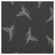 Created from a black on paper sketch of a hovering hummingbird. This pretty black and grey print is as striking from a distance as it is up close and detailed. Each hummingbird is identical with swirls, lines and dots for feather details. Set on customisable black background. This type of print is a tossed print with identical elements running in all directions. Tossed prints are good for multi-directional pattern projects.
