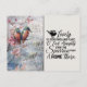 Inspirational quote scripture postcard depicts a beautiful vintage wildlife painting with pink and white flowers bending over a pond of blue water with a pair of Kingfishers perched on a branch. It features Bible Verses Psalm 84 1,3 "How lovely is your dwelling place, O LORD Almighty. Even the sparrow has a home there."