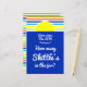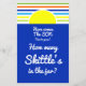Baby Shower Guess How many in the Jar game pedestal sign. Matching design for Here Comes The Son Summer Stripes Baby Shower Collection. A modern and fun and colourful design for an upbeat summer baby shower featuring a Rising Sun. Cheerful and fun font for customisable text.
