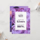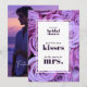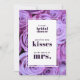 Make your event details pop with this elegant tabletop card! This customisable 5x7 card features a beautiful watercolor backdrop of romantic purple roses, perfectly framed by a clean white layout. The front is designed with the fun game prompt, "guess how many 'kisses' for the soon to be 'mrs.'," placed in an elegant script. It's personalised with the bride-to-be's name and the words "Bridal Shower."