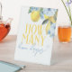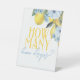 Elegant and Sweet How Many Lemon Drops Party Game Pedestal Sign. Part of our watercolor lemon and floral main squeeze bridal shower party collection, but also works great for a little lemon baby shower! Featuring beautiful elegant dusty slate blue watercolor flowers and sweet yellow lemons. Display in style next to your jar of lemon drops!