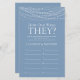 This lovely dusty blue How Old Were They? bridal shower game sheet is simple and charming - perfect for any shower. This fun and easy game is sure to bring lots of laughter to any bridal shower! Have family and friends send you pictures of the bride and groom at all different ages and have them printed. Number them and set them near these game sheets. Simply give a sheet to each guest (don't forget the pens) and let the competition begin! You'll be amazed at how many people really know the ages of the bride and groom. In seconds you can see how your game sheet will look. Simply select Personalise this Template and type in the names of the bride and groom.