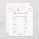 Baby shower game card featuring pink clouds and gold stars to match the Over the Moon Collection the in the Adore Paper Co Zazzle shop. A fun way to interact with shower guests to guess the age of the parents-to-be in the photos.