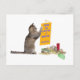 Cat is looking at instructions on 'how to catch a mouse'. Miscellaneous material to catch a mouse
