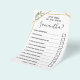 Guests answer questions about the bride, after filling in all their answers, the bride will answer all questions, and guests will check on the right boxes guess correctly, and write the total of correct answers at the bottom line. The person with the most correct answers wins.