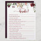 This how well do you know the bride bridal shower game is a perfect activity for a rustic bridal shower celebration. The design features burgundy, pink and blush watercolor flowers with green leaves in a brownish stained background.