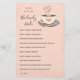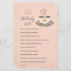 Espresso your joy for the the bride and groom to be with a latte love with these pretty coffee themed How Well Do You Know The Bride bridal shower game cardsin cream, brown, blush and silver hues with a cup of coffee that can be monogrammed with the initials of the bride and groom on its blush coloured peachy pink heart design. This steaming cups of joe on a saucer with a spoon on it has a foam heart floating in it. The back has a coffee brown and white polka dot heart pattern. Artwork © Chrissy H. Studios, LLC. All rights reserved.