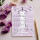 Fun & stylish how well do you know the bride shower game card. Fun game to play at your bridal shower party. An elegant white shimming dress with a black vintage hanger and accented with our handpainted violet-purple watercolor florals against a soft light purple background. Original handpainted artwork and design By Moodthology Papery.