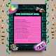Test your knowledge and add a fun twist to your 90s-themed celebration with Neon Vibes: 90s Disco Birthday Quiz Game. This vibrant game sheet features bright neon colours, retro graphics, and a cool disco vibe, making it the perfect addition to any 90s-themed birthday party. The quiz includes 13 questions designed to see how well guests know the birthday girl, adding an interactive and entertaining element to the festivities. Pair it with our matching invitations, napkins, and coasters for a fully coordinated look. For more matching products, check out the full collection.