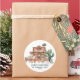 Celebrate the holidays with a touch of western charm! These unique "Howdy Christmas" round stickers feature a delightful watercolor illustration of a festive desert scene. Complete with a rustic wooden saloon, Santa dressed in cowboy attire, cheerful cacti adorned with holiday lights, and adorable characters like a snowman and reindeer, this design perfectly blends holiday cheer with desert vibes.