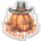 Welcome the fall season in true country style with this fun "Howdy Fall" sticker! Featuring a pumpkin wearing a cowboy hat surrounded by autumn leaves, this design blends western charm with cosy fall vibes. Perfect for fall lovers, country living enthusiasts, and pumpkin spice fans.