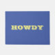 "Howdy" or personalise greeting or name in bold yellow letters on blue doormat.