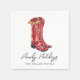 These party napkins feature a watercolor portrait of a pair of red cowgirl boots with the caption "howdy holidays".