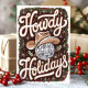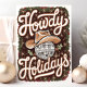 Add a unique twist to your holiday greetings with this "Howdy Holidays" card, featuring a playful cowboy hat and disco ball design. Perfect for country western fans and those who love a bit of retro holiday flair, this card combines classic cowboy style with festive cheer. Share a memorable and fun holiday greeting with family and friends who appreciate a touch of western charm!