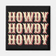 Retro style cowboy "Howdy Howdy Howdy" text design with striped letters in yellow, red and beige colours
