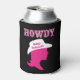 This fun fuchsia and black bachelorette can cooler is accented with a customisable, bright pink silhouette of a girl wearing a cowboy hat, making it perfect for a country, Nashville or Barbiecore Bachelorette Party! The back is further customisable with the Bachelorette Party information, and a cute pair of cowboy boots Y'all. If help is needed customising this item or if additional coordinating items are needed, just contact us with your request at prettyfancyinvites@gmail.com.