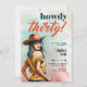 A fun 30th birthday party invitation template for women with a Western theme, featuring a sketch with watercolor accents of a beautiful woman wearing a cowgirl hat, in a flirty pose, with the title "howdy flirty". A fun 30th birthday invite for a woman on her thirtieth birthday.