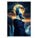 Mystic Solitude: Immerse yourself in the magical embrace of the wilderness with this poster. A majestic wolf howls beneath a radiant full moon, set against a canvas of dark storm clouds, a fiery red sunset, and the serene beauty of a forest, lake, and waterfall.
