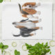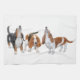 Original fine art design of three Basset hounds by artist Carolyn McFann printed on a quality, machine-washable American Mojo kitchen towel for dog lovers.