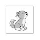 Cute cartoon wolf pup is sitting on its haunches and howls with its head up.