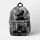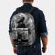 Howling Wolf smoke silhouette geometric abstract Monogram Printed Backpack. Personalise with your custom initial and name. Cool fashion accessory bag for him. Create a unique and personalised backpack with a custom touch!