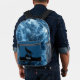 Howling Wolf blue sparkly smoke silhouette geometric abstract. Personalise with your custom initial and name. Cool fashion accessory bag for him. Create a unique and personalised backpack with a custom touch!