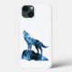 Howling Wolf blue sparkly smoke silhouette Case-Mate iPhone Case