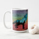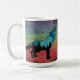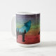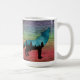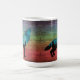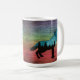 Featuring a rainbow of colors for the background, a howling wolf with pine trees and blue sky