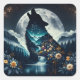 Howling Wolf | Full Moon Ai Art Square Sticker