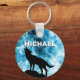 Howling Wolf Winter snowy blue smoke Custom Name Key Ring