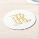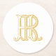 HR Monogram or RH Monogram initials logo in gold on coaster.