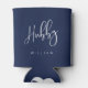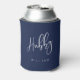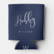 Hubby Calligraphy Navy Blue Name & Monogram Can Cooler