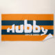 Hubby Newlywed Groom Orange & Navy Beach Towel