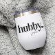 Celebrate the groom with this cute text-based honeymoon design featuring "hubby" in black lettering with a small heart illustration. Personalise with his name beneath in handwritten-style script. Matching "wifey" sold separately.
