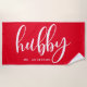 Celebrate your newlywed status with this bold "Hubby" beach towel in red and white, perfect for honeymoons, beach days, or poolside relaxation. Created for grooms and husbands, this towel can be personalised with a last name, making it a thoughtful gift or stylish accessory. Whether you’re at the beach or by the pool, this towel is a fun way to showcase your love and style.
