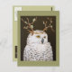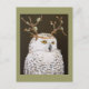 Hudson the snowy owl with twig and lichen antlers on postcard