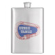 The product is a good size and came exactly as it was pictured. The lid is not attached to the flask, which could be dangerous on drunken nights... The print came out surprisingly well and looks very sharp. Would definitely recommend.