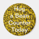 Button for accountants says "Hug a Bean Counter Today." in white lettering on a background of yellow beans. Who says accountants don't have a sense of humour? Cute gift for your favourite number cruncher.