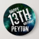 Galaxy Stars Out of This World Birthday Party Personalised Pin Back Button with Blue Green Galaxy Design with Custom Name and Age. Great for boys and girls.